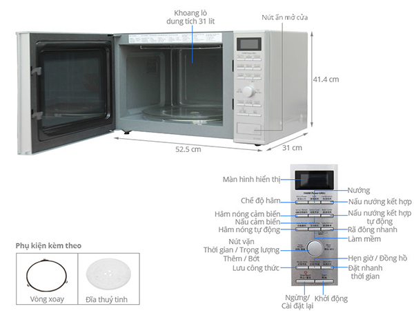 | Kích thước khoang lò | 539 x 247 x 362 mm |