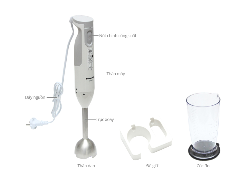Các đặc điểm chính của máy xay cầm tay Panasonic MX-GS1WRA, công suất 600W, 1 tốc độ, thân nhựa