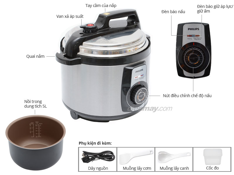 Các đặc điểm chính của nồi áp suất điện bằng cơ Philips HD2103