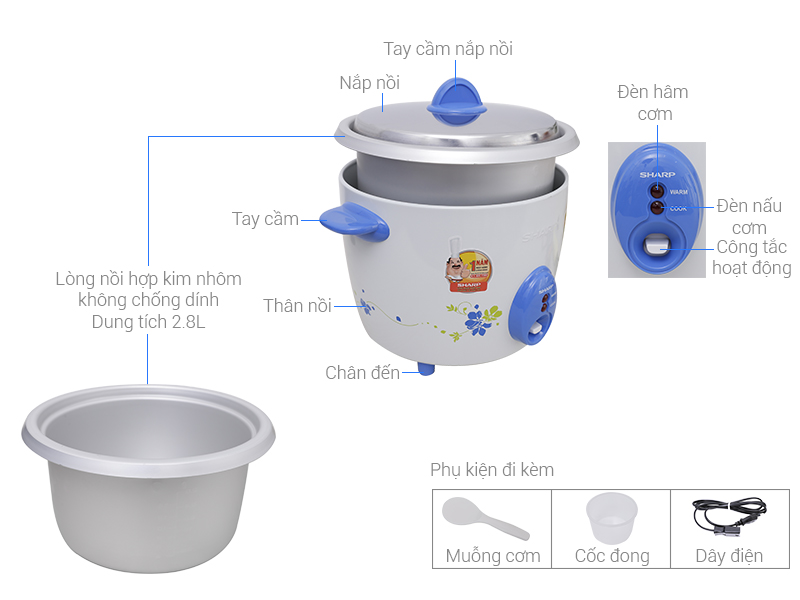 Các đặc điểm chính của sản phẩm nồi cơm điện nắp rời Sharp KSH-D28V