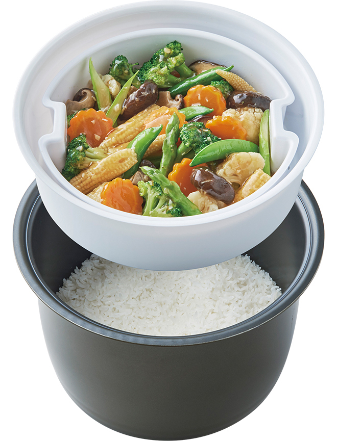 Với Chế độ Double Cook, có hai xửng - Xửng Nấu Song song và Xửng hấp, các món ăn được nấu chín nhờ hơi nước và nhiệt được tạo ra trong quá trình nấu cơm.