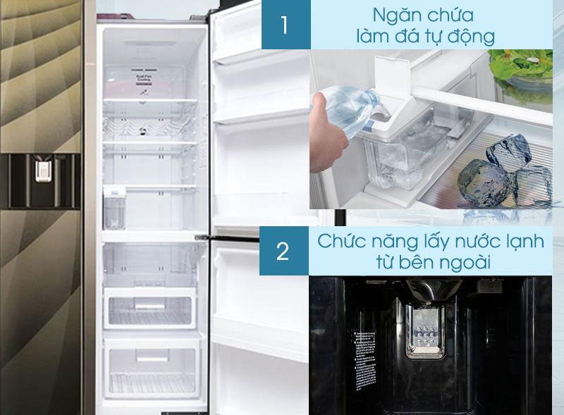 Chỉ cần cho nước vào bình nước 4,0 lít, tủ lạnh sẽ tự động làm đá cho bạn. Không cần hệ thống dẫn nước, bạn có thể lắp đặt tủ lạnh gần như ở bất cứ vị trí nào bạn muốn. Bình nước cũng có thể tháo ra và vệ sinh dễ dàng.