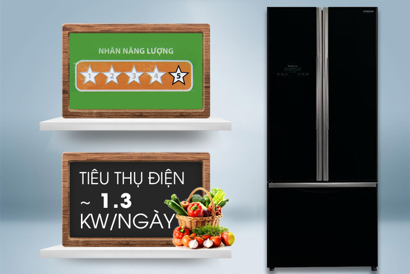 Công nghệ Inverter hiện đại giúp cho tủ lạnh Hitachi R-WB545PGV2 có thể giảm đi những lãng phí về điện năng. Mỗi ngày, chiếc tủ lạnh này sẽ tiêu hao khoảng 1.3 kW điện.