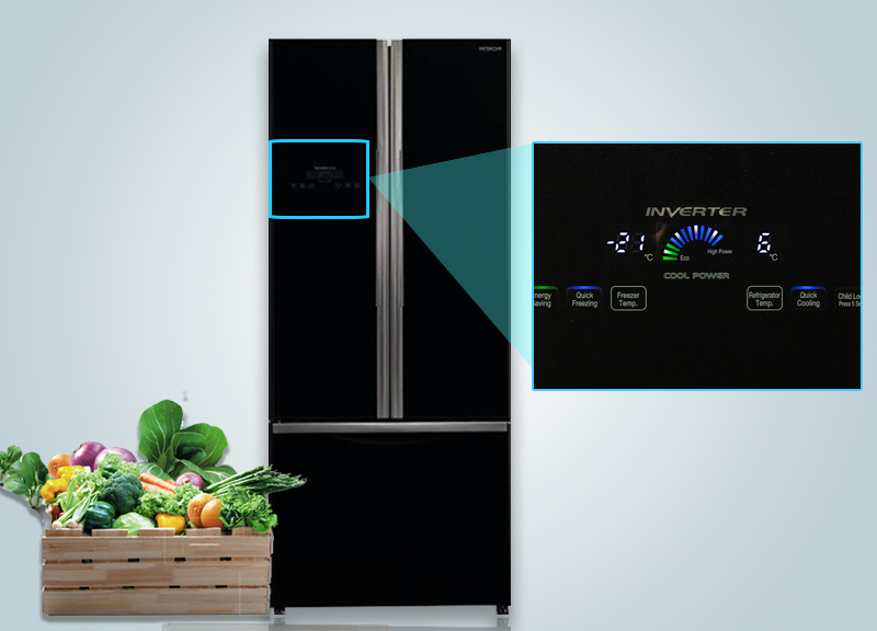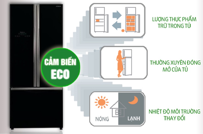 Tủ lạnh Hitachi R-WB550PGV2 có cảm biến nhiệt Eco độc đáo, ghi nhận sự thay đổi nhiệt độ của tủ lạnh và xung quanh rồi đưa ra tùy chỉnh chế độ phù hợp.