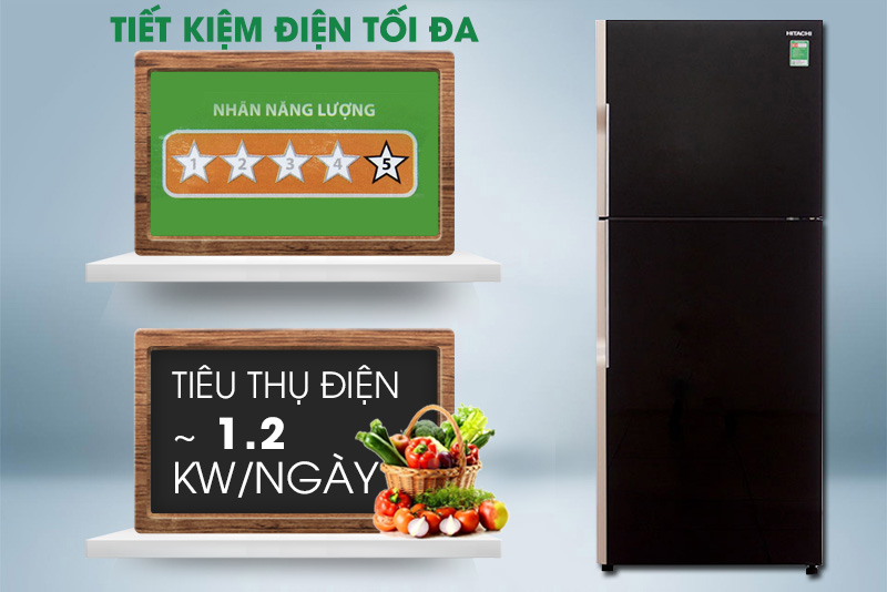 Công nghệ Inverter hiện đại giúp cho tủ lạnh Hitachi R-VG470PGV3 có thể giảm đi những lãng phí về điện năng. Mỗi ngày, chiếc tủ lạnh này sẽ tiêu hao khoảng 1.2 kW điện.