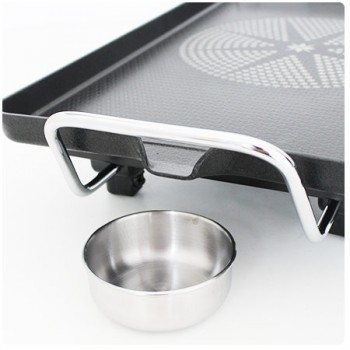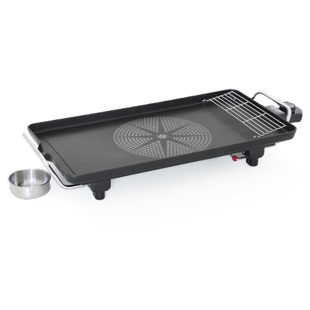 Tay nắm vỉ nướng được thiết kế bằng inox nên rất chắc chắn. Ngoài ra, sản phẩm còn có chân gạt nghiêng vỉ để giúp trút dầu thừa vô cùng tiện lợi. Phần Điều khiển nhiệt bằng núm vặn đơn giản dễ sử dụng. Ngoài ra, khi mua sản phẩm bạn còn được trang bị thêm những phụ kiện tiện dụng như vỉ đựng đồ đã nướng & chén hứng dầu.